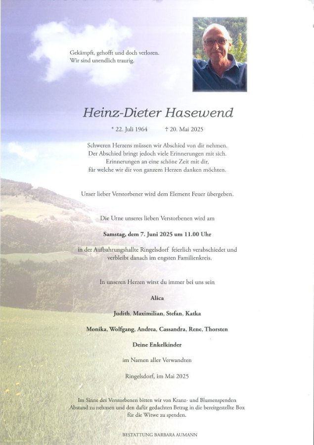 Heinz-Dieter Hasewendgestorben am 20. Mai 2025